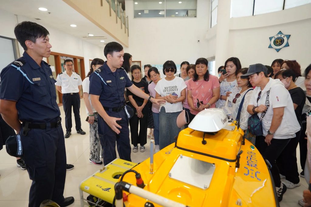 Durante a visita, o pessoal da equipa de mergulhadores explicou a operação e utilização dos equipamentos de mergulho, equipamentos de comunicação, veículos anfíbios, motas de água e botes de borracha utilizados frequentemente nos trabalhos quotidianos e trabalhos de resgate, ao mesmo tempo, os visitantes foram organizados para um contacto próximo e para experienciar pessoalmente os equipamentos em questão.