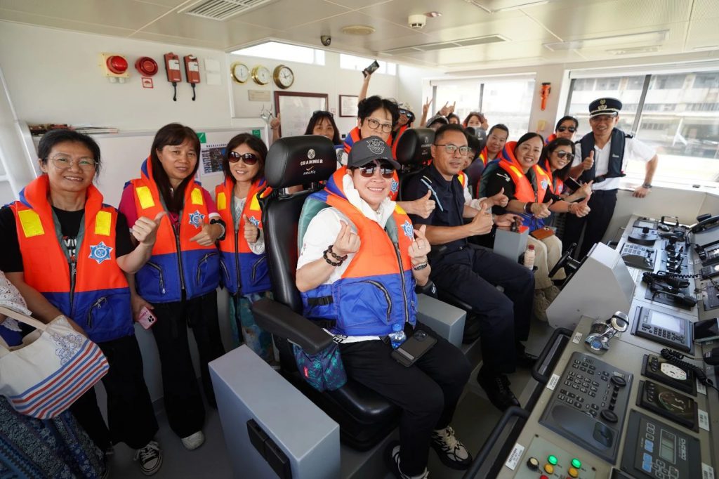 Finalmente, sob a liderança do pessoal alfandegário, os visitantes embarcaram na lancha de fiscalização para conhecerem a aplicação dos equipamentos tecnológicos instalados na embarcação no trabalho quotidiano, e conhecerem ainda melhor, através da experiência pessoal no trabalho de policiamento, a situação concreta da área marítima de jurisdição de Macau.