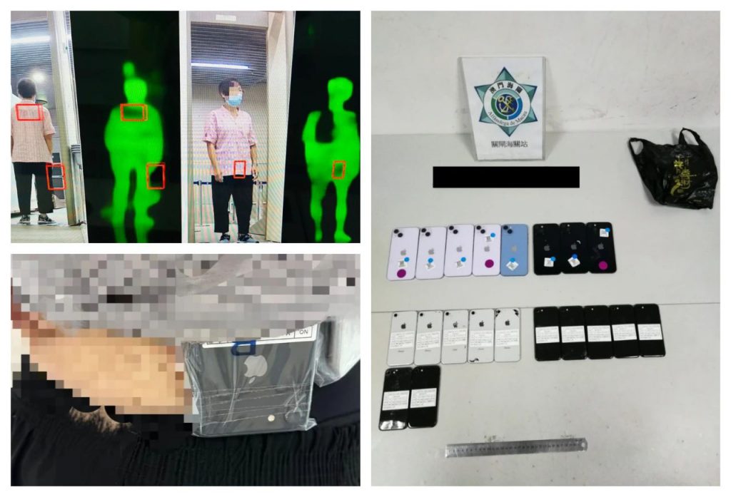 于7月25日下午,海关人员在关闸口岸出境旅客检查区发现2名通关女子形迹可疑,怀疑其藏有可疑物品。经使用太赫兹人体成像安检系统进行详细检查后,发现该2名女子合共40部旧手提电话绑藏于腰间,试图偷运出境。