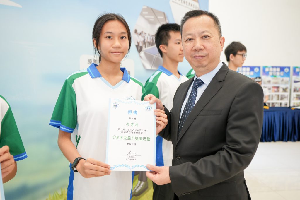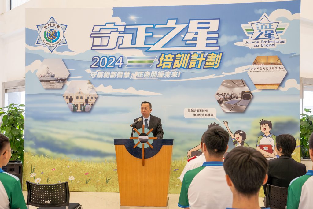 8月8日,海关关长黄文忠主持证书颁发仪式,关长致辞时表示,“育身心,展德才;勇担当,建未来"是澳门的青年政策愿景,透过短短三天的培训,相信各位完成培训的学员对海关工作及相关法律有更深入的理解和认识,同时对国家安全及“一国两制”等方面有了更准确和深入的认知,希望大家能够继续弘扬爱国爱澳的核心价值,坚决维护国家安全。同时,关长寄语学员开拓视野,提高自身的综合素质及竞争力,把握多方面机遇,规划更好的未来,实现更好的自我,获得更大的成就。