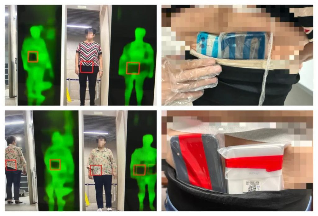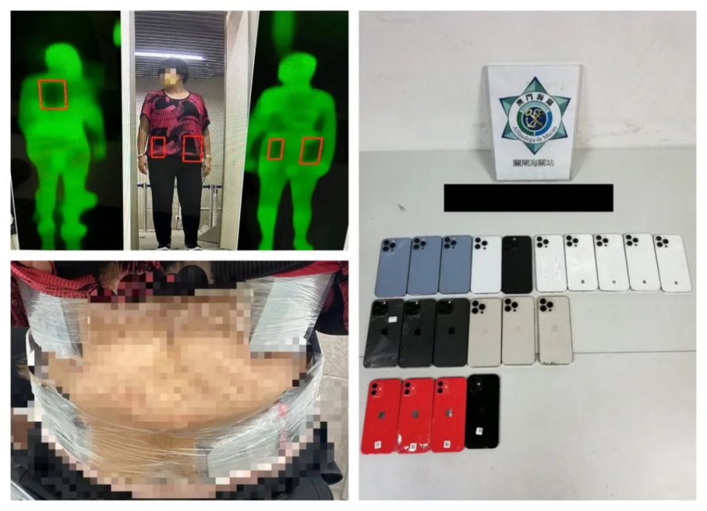 Na tarde de 25 de Julho, os verificadores alfandegários encontraram duas mulheres agindo de forma suspeita na área de inspecção de passageiros de saída no Posto Fronteiriço das Portas do Cerco, suspeitaram que elas tinham itens suspeitos escondidos no seu corpo. Após inspecção pelo Sistema de inspecção da segurança por scanner corporal Terahertz, descobriram que as duas tinham 40 telemóveis usados na cintura, na tentativa de contrabandeá-los para fora de Macau.