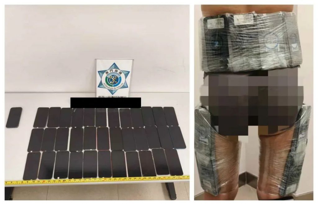 Entre a tarde e a noite de 28 de Julho, os verificadores alfandegários encontraram três homens e uma mulher que agindo de forma suspeita na área de inspecção de passageiros de saída do Posto Fronteiriço Qingmao, suspeitaram que eles tinham itens suspeitos escondidos no seu corpo. Após inspecção detalhada, descobriram que os quatros envolvidos tinham 34 telemóveis usados amarrados na cintura e pernas, na tentativa de contrabandeá-los para fora de Macau.