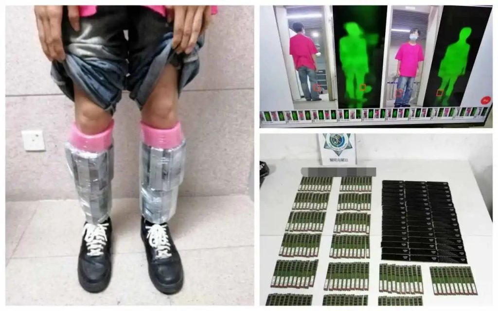 Um estudante local do ensino secundário amarrou 198 peças de memória de computador nas pernas e tentou contrabandeá-las para fora de Macau.