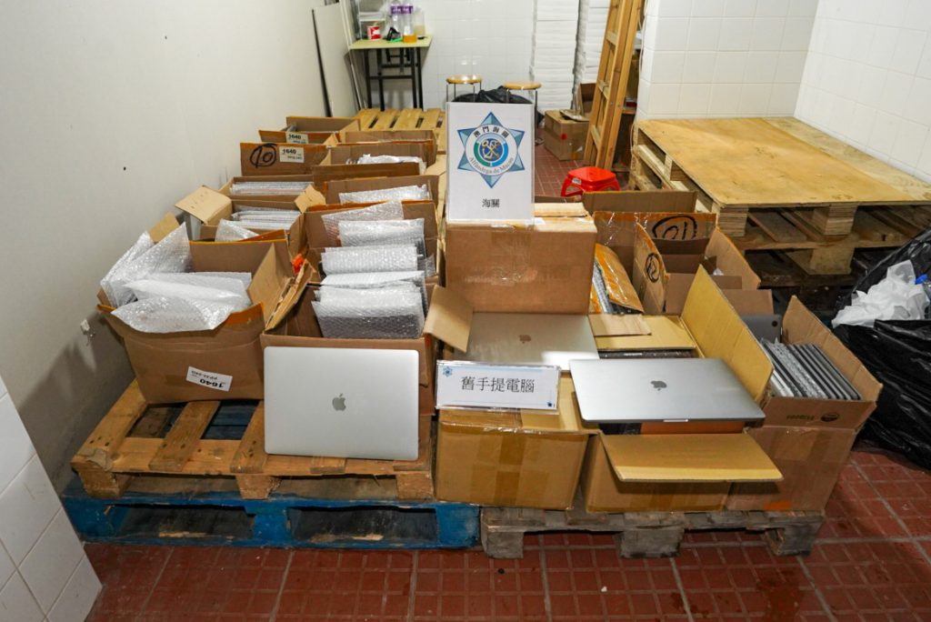 Ao fim da tarde do dia 20, o pessoal alfandegário interceptou no Posto Fronteiriço das Portas do Cerco um indivíduo de saída, encontrando no seu corpo 1 computador portatil usado e 1 recibo de prova para o transporte de mercadorias, após interrogatório, o homem admitiu que ia levar a mercadoria de uma loja da zona norte para fora de Macau com a respectiva recompensa pecuniária. Visto que era o momento ideal, o pessoal alfandegário tomou logo a acção à loja alvo, foi interceptado 1 homem responsável no local com um lote de computadores portáteis usados, de acordo com a vigilânica e investigação anterior, a loja vizinha era suspeita de ser armazém da loja envolvida no caso, foram encontradas nas 2 lojas um total de 280 unidades de computadores portáteis usados com um valor total de cerca de 770 mil patacas.