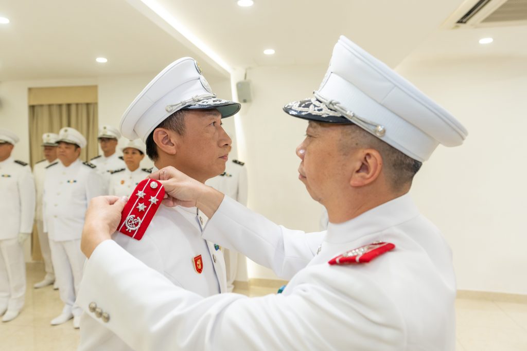 黄文忠关长为新任助理关长叶华钊佩戴肩章