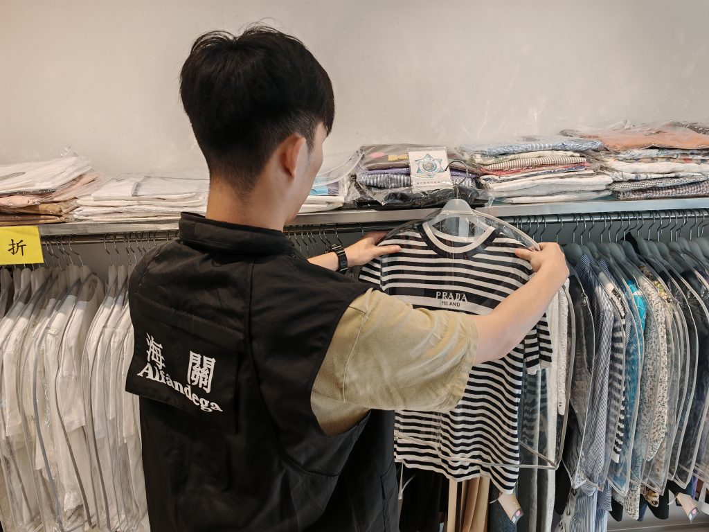 海关日前巡查市面期间,发现高士德区一店铺出售的品牌服饰造工粗糙,怀疑为假冒产品。海关经情报搜集及深入调查,于本月29日,海关见时机成熟,对该店铺采取行动,查获合共57件怀疑侵权服饰,种类包括服装、鞋、皮带及颈链连吊坠等,以正货价格计算约值87万9千澳门元。部分物品经相关品牌鉴定人进行鉴定,证实为假冒产品。1名女性店铺负责人被带走调查。