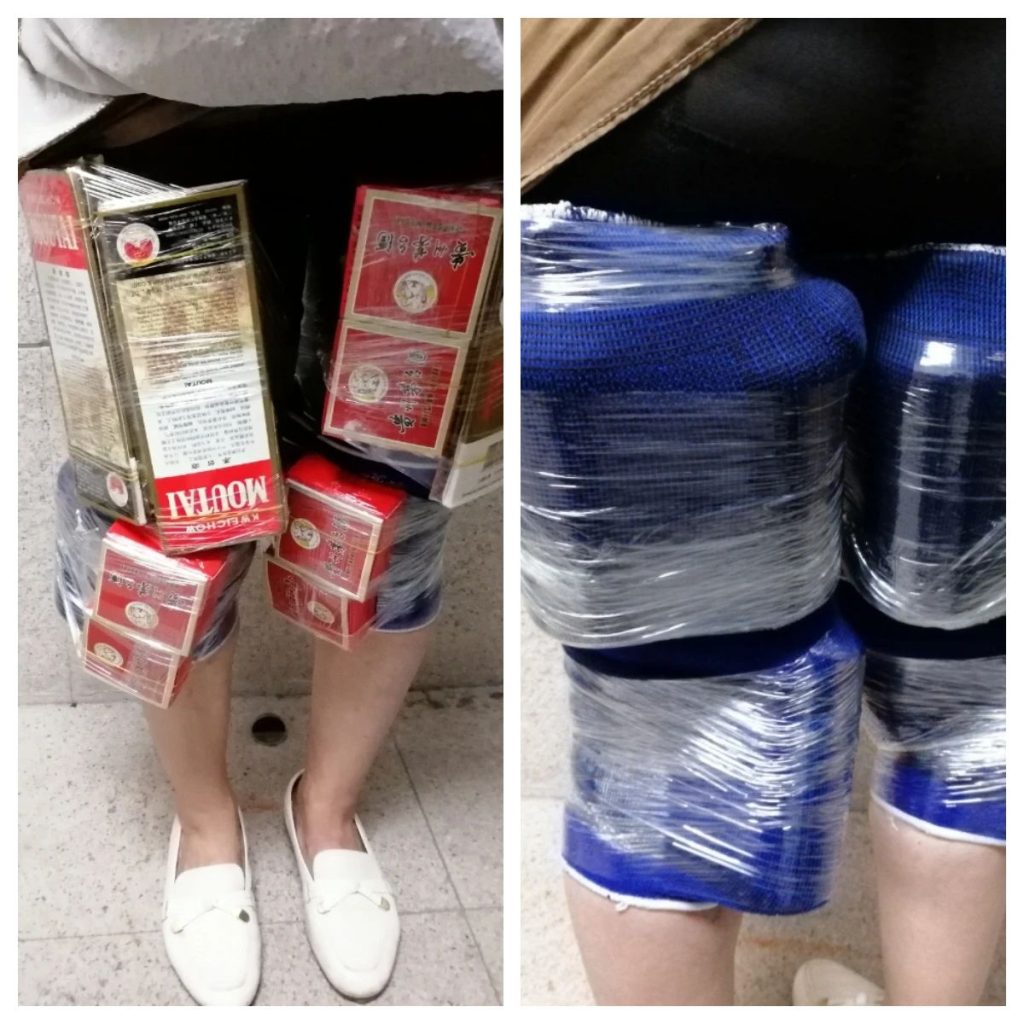 Após uma inspecção mais profunda, o pessoal alfandegário verificou que a mulher em questão tinha separado as 6 garras de vinho branco chinês e as bagagens e amrrados, respectivamente na frente e parte de trás das coxas com a intenção de fugir a fiscalização aduaneira. o indivíduo do sexo feminino declarou que as mercadorias foram adquiridas na área junto das Portas do Cerco e para o consumo próprio mas não conseguiu demonstrar qualquer recibo.