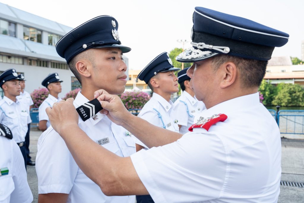 仪式由黄文忠关长主持,一众人员在宣誓后,由海关领导及主管为学员佩戴肩章,正式成为海关关员。是次就职的人员中,超过百分之八十具备学士学位或更高学历,总成绩优异奖由欧阳敏琪获得。
