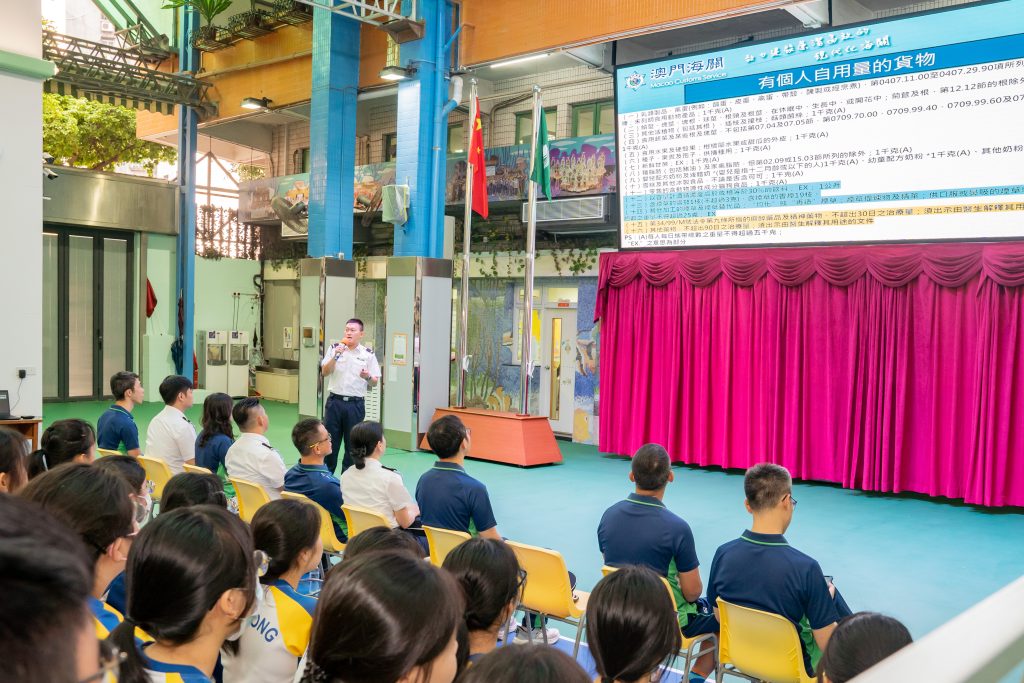 Na palestra, o representante dos SA apresentou os usos e funções dos equipamentos de inspecção aduaneira instalados em cada posto fronteiriço, e explicaram através de casos reais a Lei do Comércio Externo, permitindo aos alunos uma compreensão mais profunda do trabalho diário e das responsabilidades dos SA, as questões comuns sobre os transportes de mercadorias entre Macau e China, bem como os métodos de contrabando e seus danos em casos ilegais.