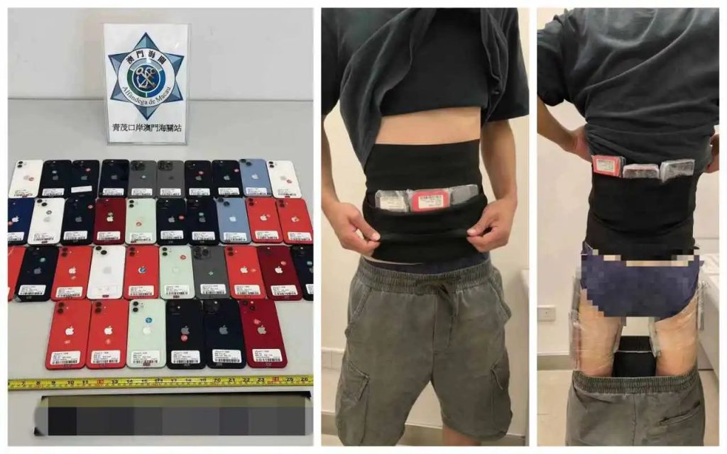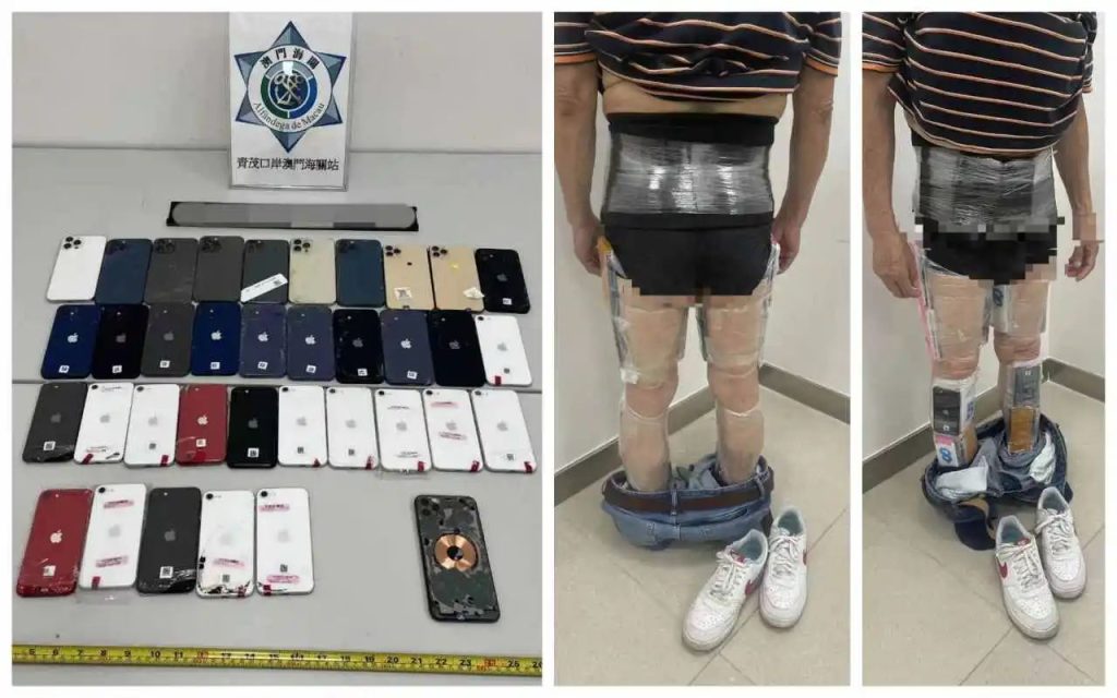 Na tarde do dia 11, os verificadores alfandegários encontraram um indivíduo do sexo feminino que apresentava movimento suspeito na área de inspecção de passageiros de saída do Posto Fronteiriço Qingmao, após uma inspecção mais profunda, que o homem em questão tinha amarrado 36 unidades de telemóveis usados na cintura e virilha, na tentativa de contrabandeá-los para fora de Macau.