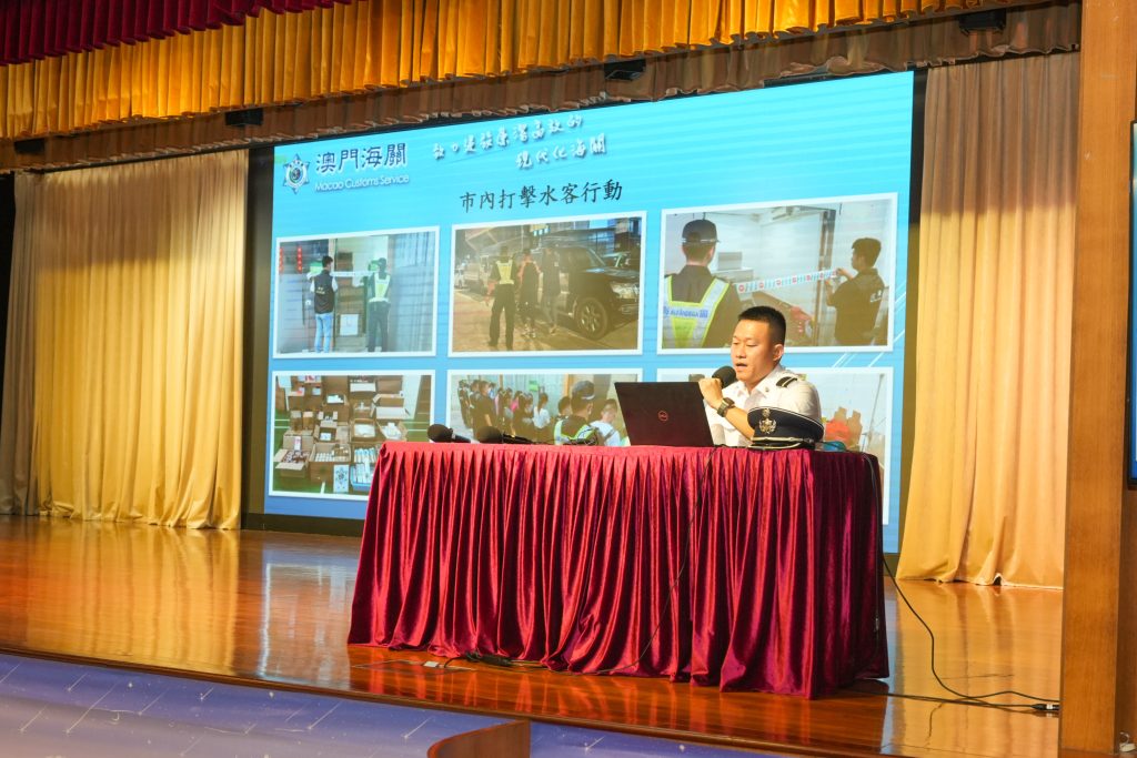Na palestra, o representante dos SA explicou, em pormenor, o respectivo conhecimento da Lei do Comércio Externo, a estratégica dos SA no combate da actividade de praticante do comércio paralelo e o respectivo efeito adquirido do trabalho efectuado, a forma de transporte de mercadorias utilizada mais frequentemente com o uso de casos reais, o tipo de mercadorias e os métodos utilizados para o transporte ilegal. O representante dos SA apresentou ainda os diferentes serviços online da aplicação de telemóvel destes Serviços e apelando o descarregamento para utilizar dos cidadãos no sentido de consultar, em qualquer lugar e momento, as informações sobre os serviços mais actualizados dos SA, os assuntos ligados com o transporte de mercadorias para a entrada e saída e até as informações imediatas.