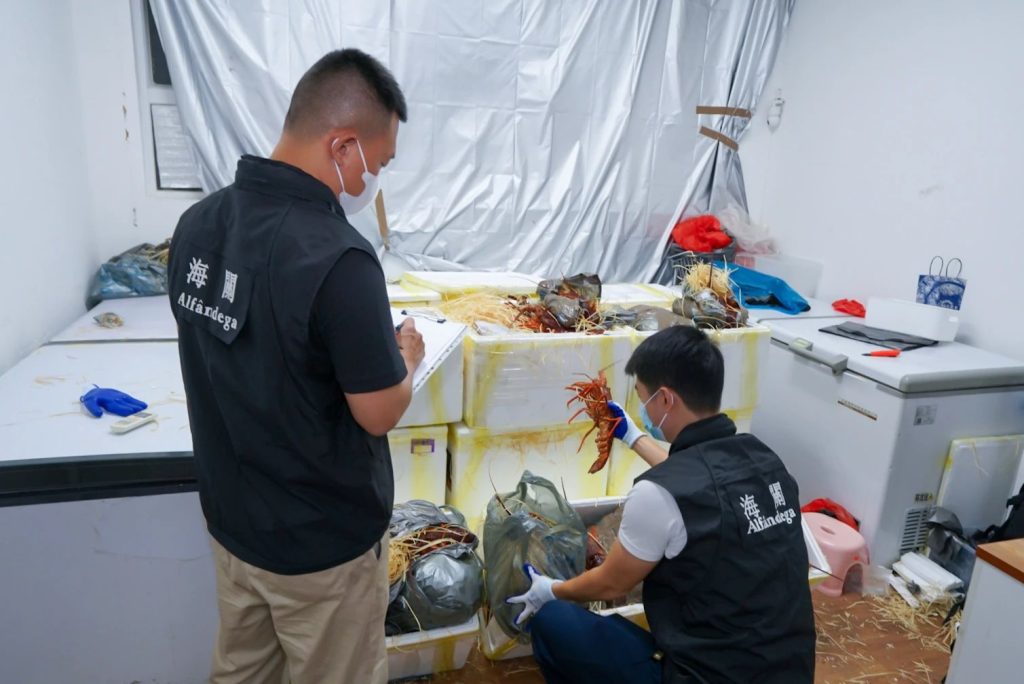 海关密切留意水客活动的发展态势,加强情报收集及分析,持续开展打击行动。于17日下午,海关于市内巡查期间发现北区一个怀疑水客活动散货点,实时对有关单位采取行动,现场查获250公斤活龙虾,货物市值约20万澳门元,1人违法被查。
