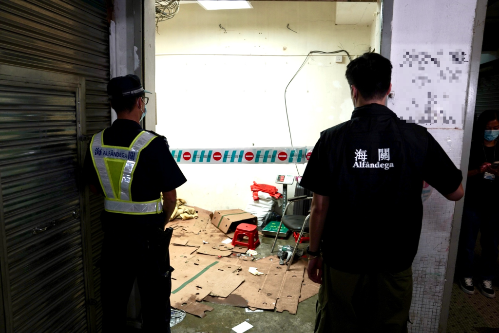 为有效遏止珠澳两地不法贩运活动,澳门海关与拱北海关展开【护盾2024】联合行动。于25日下午,澳门海关于市内巡查期间发现北区一个怀疑水客活动散货点,实时对有关单位采取行动,现场查获1,500公斤急冻牛栢叶,货物市值约22万5千澳门元,1人违法被查。