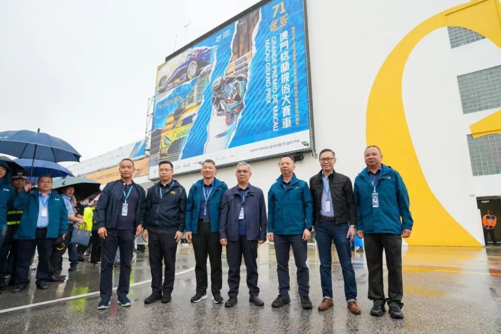11月17日上午,保安司黄少泽司长、警察总局梁文昌局长、澳门海关黄文忠关长、治安警察局吴锦华局长、司法警察局薛仲明局长、消防局梁毓森局长等一众官员,到赛车场巡视安保工作的执行情况,慰问及勉励人员全力以赴,确保大赛车顺利举行。
