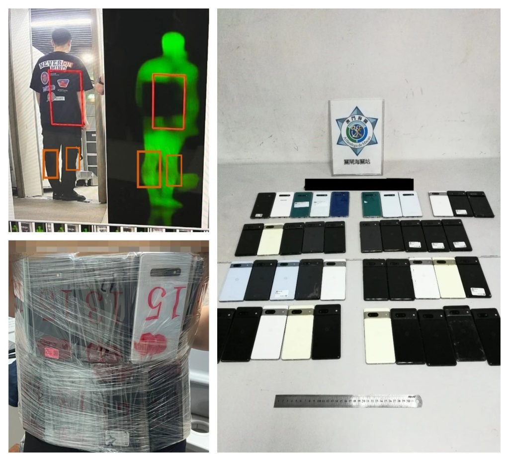 Na noite de 6 de Novembro, os verificadores alfandegários encontraram um homem andando de forma suspeita na área de inspecção de passageiros de saída no Posto Fronteiriço das Portas do Cerco, suspeitaram que ele tinha itens suspeitos escondidos no seu corpo. Após inspecção pelo Sistema de inspecção da segurança por scanner corporal Terahertz, descobriram que o homem tinha 41 telemóveis usados amarrados na cintura e nas coxas, na tentativa de contrabandeá-los para fora de Macau.