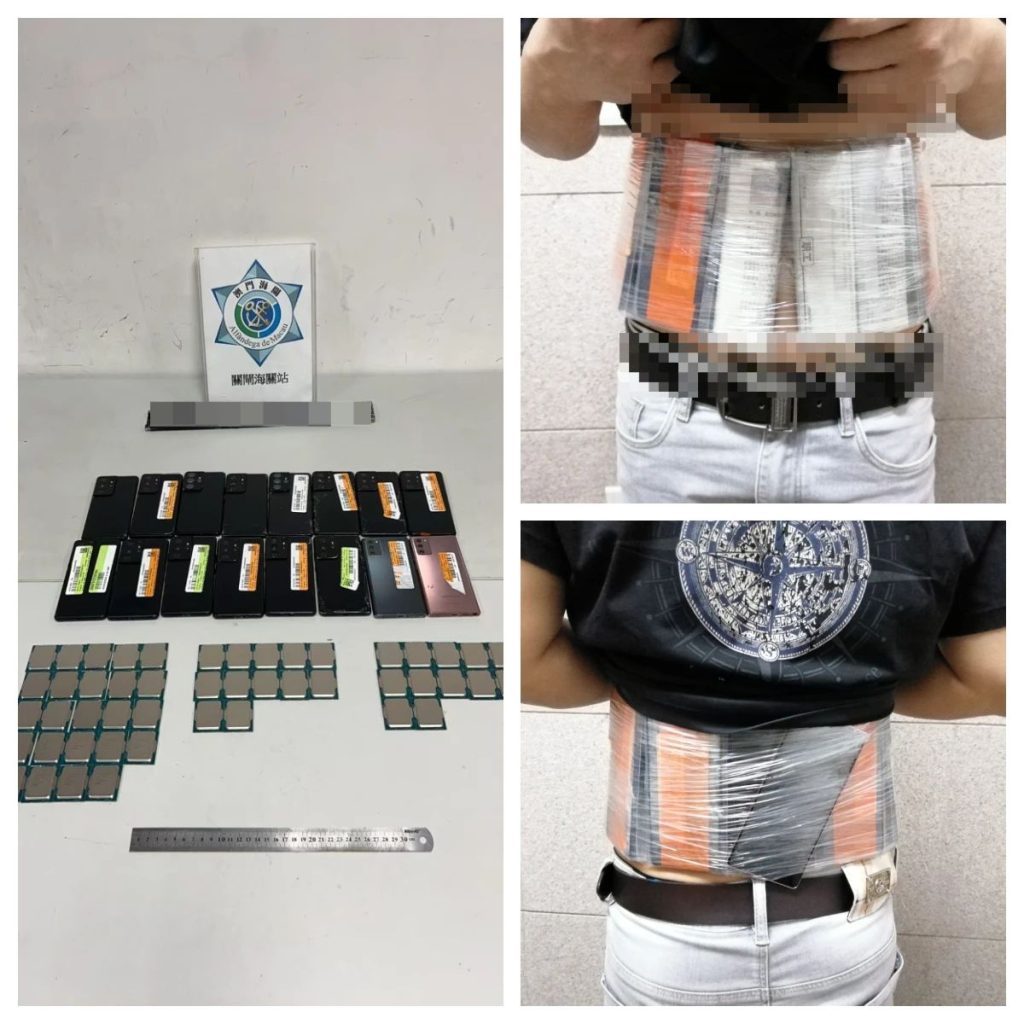 De 5 a 9 de Novembro de 2024, os SA interceptaram 4 casos de transporte ilegal de mercadorias para sair de Macau nos Postos Fronteiriços das Portas do Cerco, foram apreendidos 97 telemóveis usados e 60 peças de processadores de computador. Nos casos estiveram envolvidas 4 pessoas residentes de Macau, de Hong Kong e do Interior da China, com idades entre 22 e 46 anos, os SA elaboraram já as acusações contra os indivíduos envolvidos nos termos da Lei do Comércio Externo, caso sejam condenados, podem ser punidos com a pena de multa até 50 mil patacas, sendo as mercadorias apreendidas, declaradas perdidas a favor da RAEM.