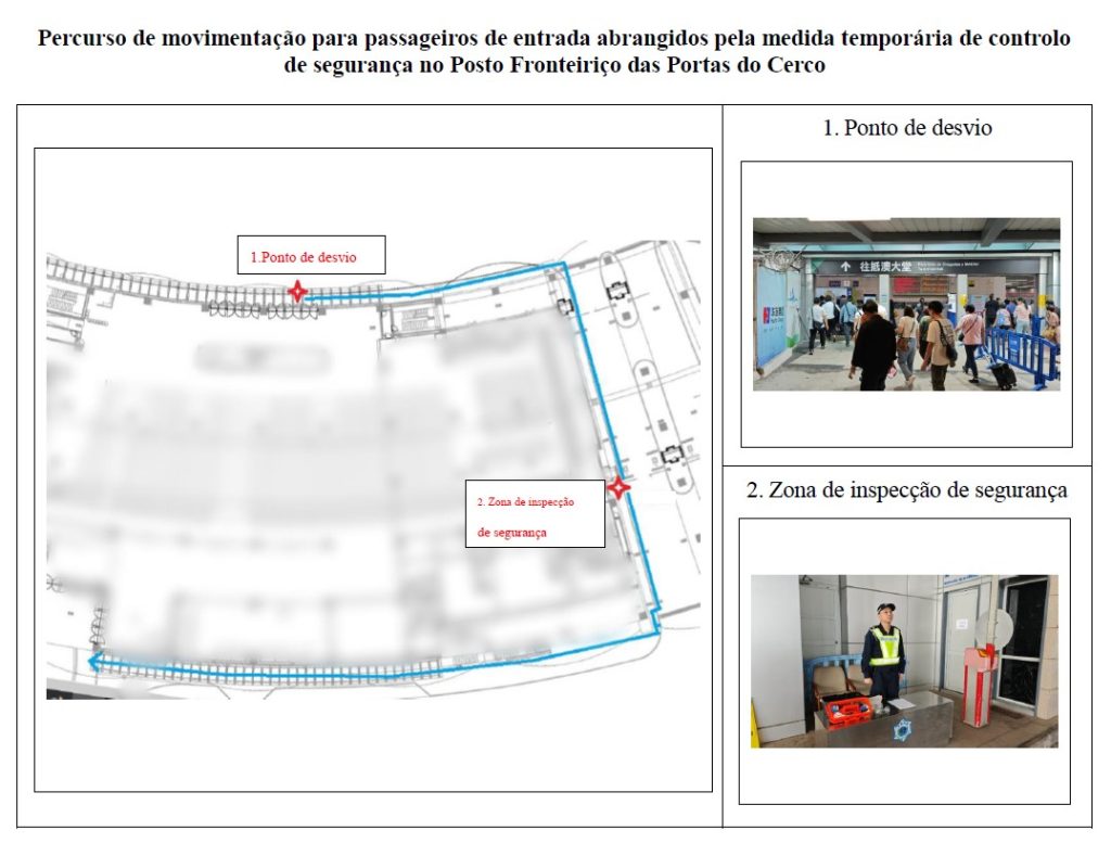 Durante este período, os cidadãos e turistas que utilizem ou transportem cadeiras de rodas eléctricas, trotinetes eléctricas ou bagagens eléctricas, ao passar pelos Postos Fronteiriços das Portas do Cerco, de Macau da Ponte Hong Kong-Zhuhai-Macau (apenas aos passageiros provenientes de Hong Kong a Macau), ou ao sair pelos Postos Fronteiriços Qingmao, da Parte de Macau do Posto Fronteiriço Hengqin, terão o pessoal dos SA, do CPSP e do CB a trabalhar em conjunto para garantir que os passageiros que utilizem ou transportem os artigos acima referidos passem pelos postos fronteiriços de forma segura. Para este efeito, serão implementadas medidas de desvio adequadas nos posto fronteiriços acima mencionados para estes passageiros; além disso, no Posto Fronteiriço das Portas do Cerco também existem faixas exclusivas para os mesmos, os cidadãos ou turistas devem cooperar com as instruções e as orientações dos trabalhadores presentes.