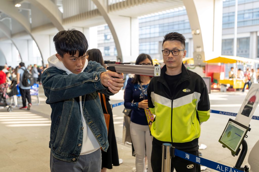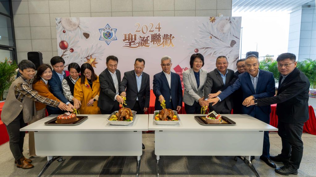 保安司司長黃少澤、保安司司長辦公室主任張玉英、海關關長黃文忠與一眾領導、主管及嘉賓參與聯歡會。保安司司長等人在海關領導及主管陪同下參觀海關無人機及潛水裝備,其後主持切火雞儀式,在冬日的暖陽中,向各海關人員及家屬送上節日祝福。