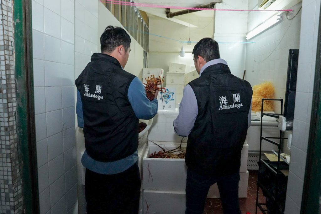 在警察總局統籌下,澳門海關持續開展【雷霆2024】行動,加強打擊不法活動。本月12日,澳門海關於市內巡查期間發現北區一個懷疑水客活動散貨點,即時對有關單位採取行動,查獲650公斤活龍蝦,貨物市值約50萬澳門元,1人違法被查。