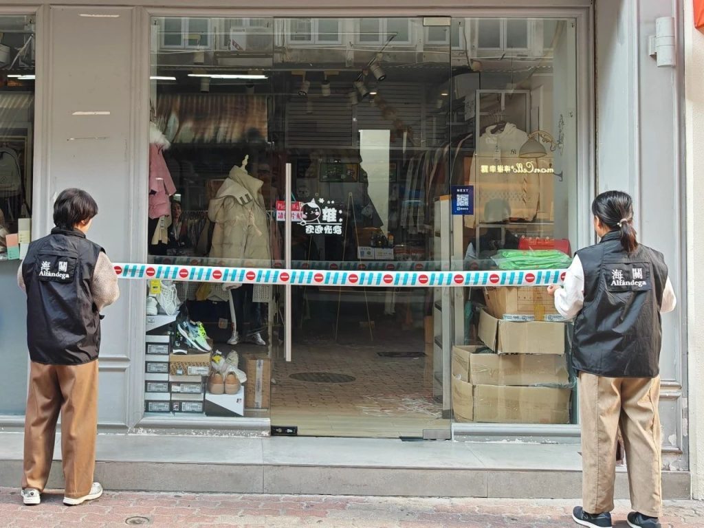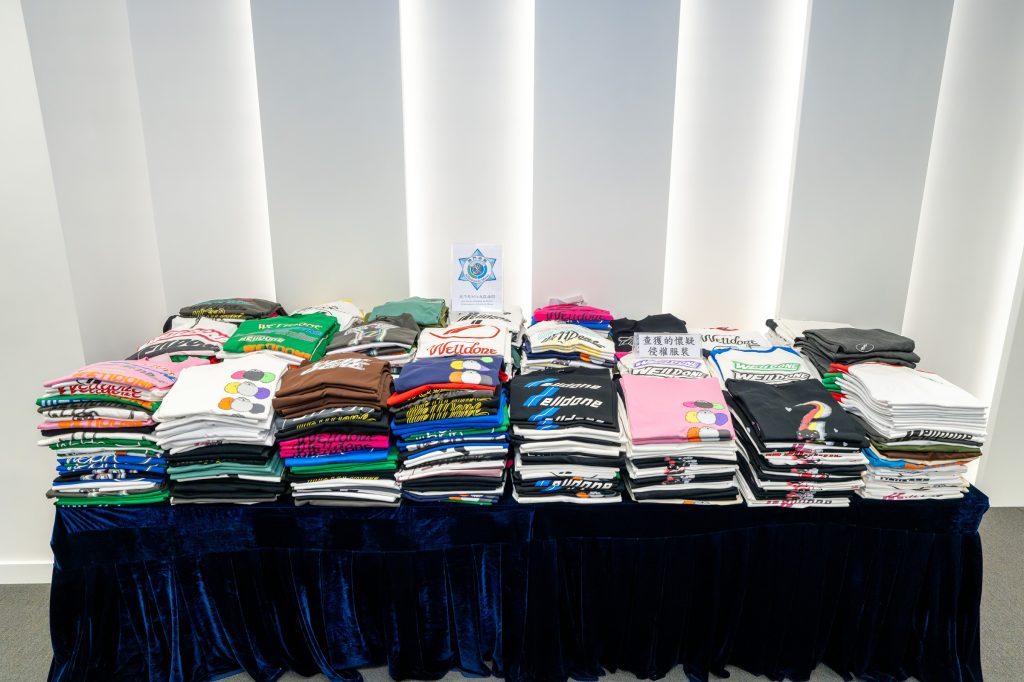 Durante uma recente rusga do mercado pelos SA, foi descoberta uma boutique da zona de praia grande que a estava a vender vestuário de fabrico grosseiro, suspeitando-se de ser falsificado. Após recolha de informações e investigação aprofundada, no dia 9 do corrente mês, visto que era o momento ideal, os SA tomaram a acção contra a boutique em questão, tendo apreendido um total de 729 peças de vestuário suspeitas de violação de direitos, o valor para as mercadorias se fossem originais atingiam cerca de 1,23 milhões patacas. Foram identificados como produtos falsificados por peritagem das marcas relevantes, 1 vendedora de loja foi levada para investigação.