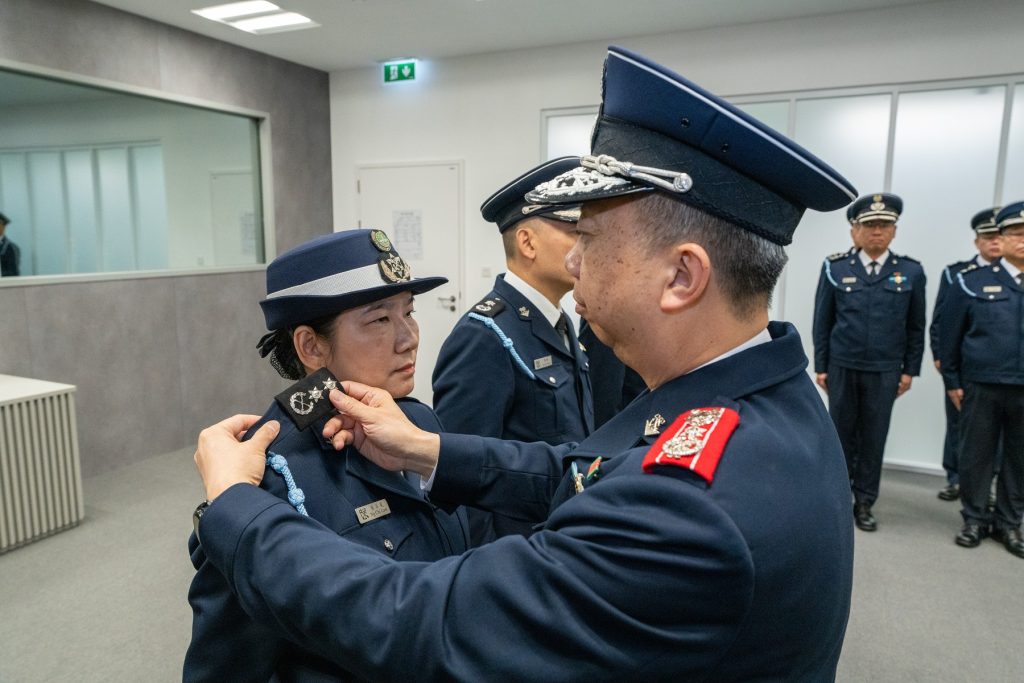 海关关长黄文忠为晋升人员佩戴肩章