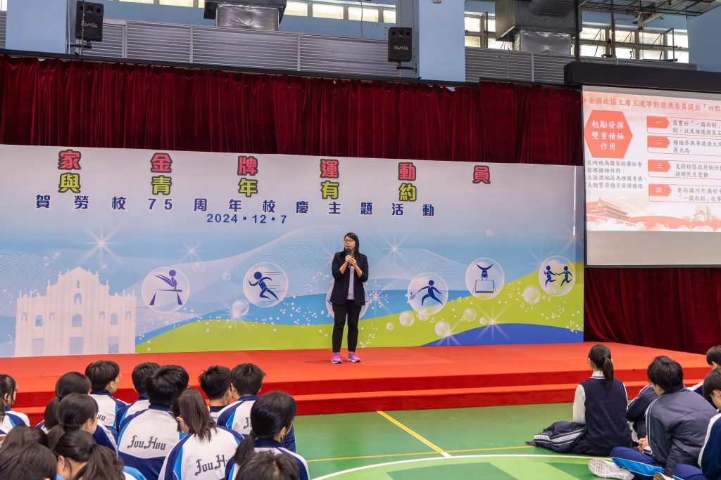 Para comemorar o 75º aniversário da Implantação da República Popular da China e o 25º aniversário do Estabelecimento da Região Administrativa Especial de Macau, o Comité Olímpico e Desportivo de Macau, China e a Associação de Amizade de embros da Conferência Consultiva Política do Povo Chinês na Instância de Província de Macau organizaram conjuntamente a “Visita dos medalhistas de ouro a Macau x mebros de CCPPC entram nas escolas”. Como unidade participante, os SA organizaram um total de 12 formandos dos Jovens Protectores do Original para participarem no evento de hoje (7 de Dezembro).