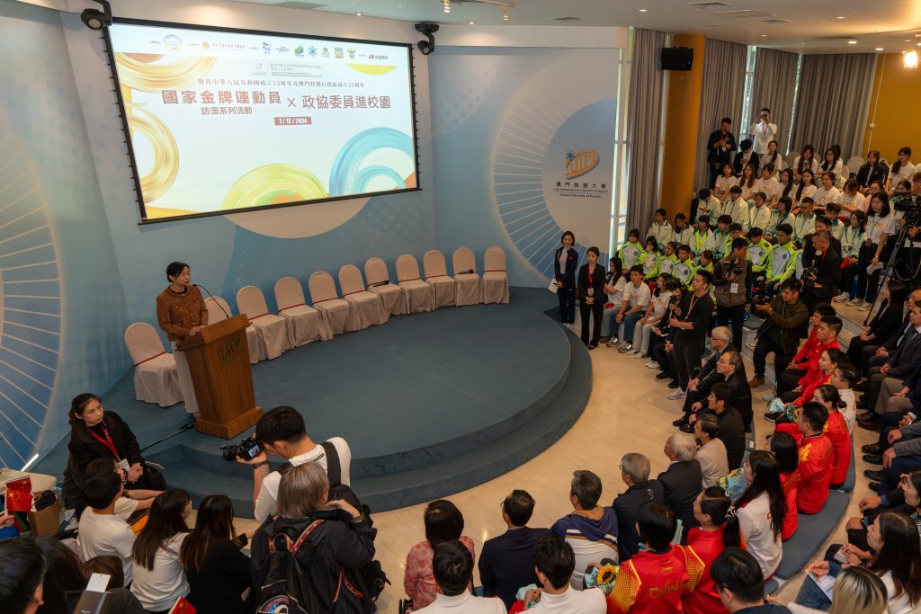 Na manhã do dia 7, os medalhistas de ouro nacionais visitaram a Universidade de Turismo de Macau e Escola Secundária Lou Hau para realizar um encontro de intercâmbio para partilhar com os jovens e estudantes locais a árdua jornada de buscar das medalhadas de ouro e os esforços para o sucesso. Durante o período, os medalhistas responderam cordialmente às perguntas e comunicaram sinceramente com os jovens. Os formandos dos Jovens Protectores do Original também participaram activamente nos jogos do evento, e ainda aproveitaram para tirar fotografias com os medalhistas de ouro nacionais e ganhar autógrafos.