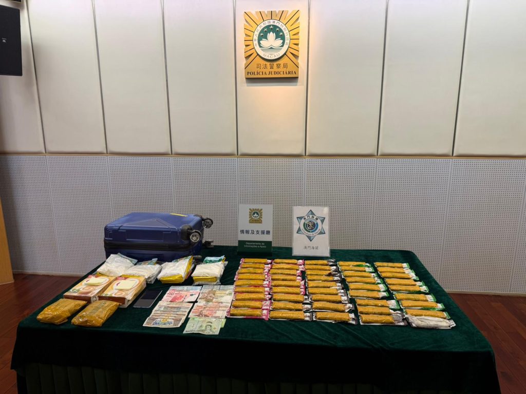 本月9日下午,涉案男子搭乘航班抵達澳門,司警局人員根據海關提供的情報,在涉案男子提取行李並離開機場後進行跟蹤監控。經調查發現,該男子入住本澳某酒店後並未外出。至本月12日上午,司警局人員發現其攜帶行李前往外港客運碼頭準備購買船票離境,立即採取拘捕行動,成功在其行李中搜出多包以餅乾及咖啡包裝作掩飾的毒品。