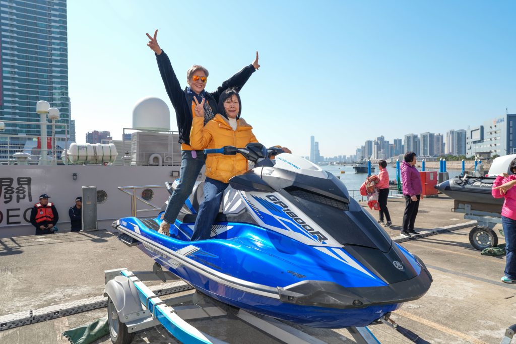 Finalmente, sob a liderança do pessoal alfandegário, os visitantes embarcaram na lancha de fiscalização para conhecerem a aplicação dos equipamentos tecnológicos instalados na embarcação no trabalho quotidiano, e conhecerem ainda melhor, através da experiência pessoal no trabalho de policiamento, a situação concreta da área marítima de jurisdição de Macau.