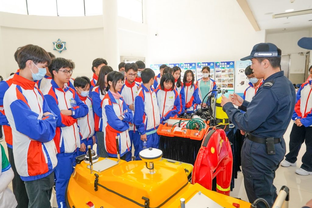 隨後,由潛水隊人員講解在海上執勤及救援工作中常用的潛水裝備、通訊設備、水陸兩用車、水上電單車及橡皮艇等設備的操作和應用,同時安排參觀者近距離接觸和親身體驗。
