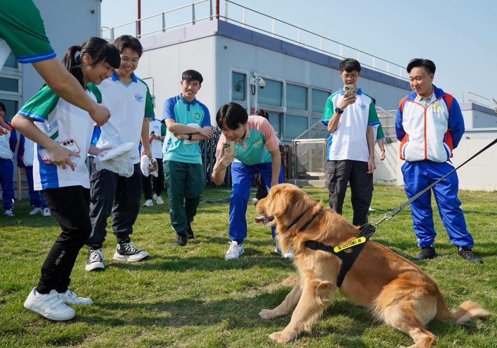 Posteriormente, os visitantes chegaram a Hong Kong Customs Canine Force Hong Kong-Zhuhai-Macau Bridge Base, onde assistiram a uma demonstração de busca de passageiros e de bens pessoais por cães detetores, sob a orientação de agentes do Hong Kong Customs and Excise Department, visitaram também os canis, as instalações de criação e treino de cães e aprenderam sobre a interação diária e o treino entre os treinadores e os cães detetores, demonstrando o contributo da base como centro regional de treino de cães para a Organização Mundial das Alfândegas.