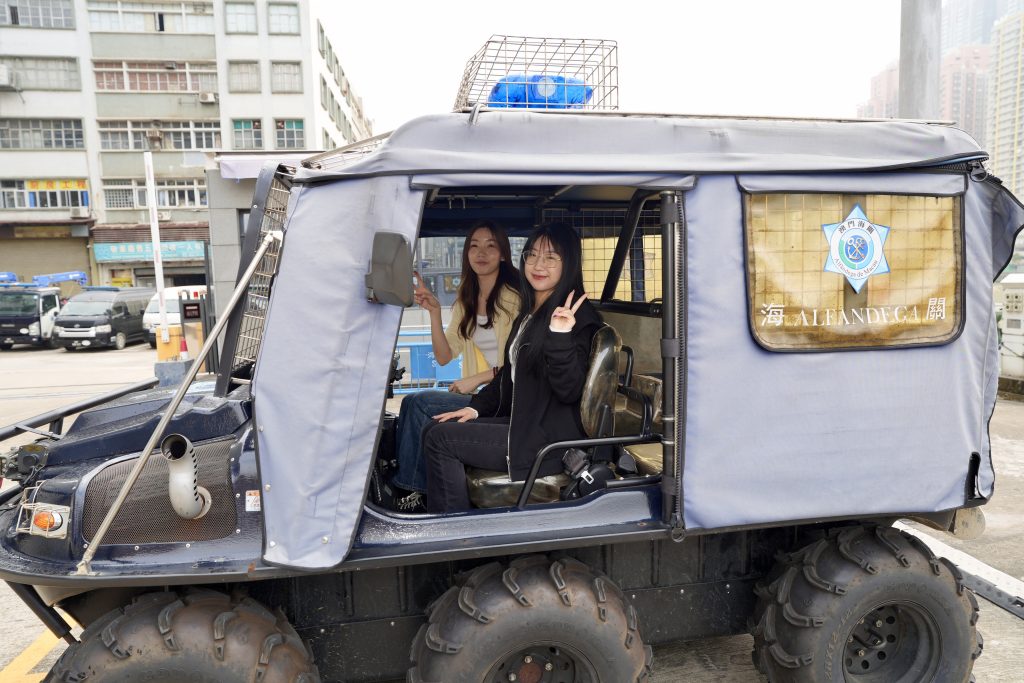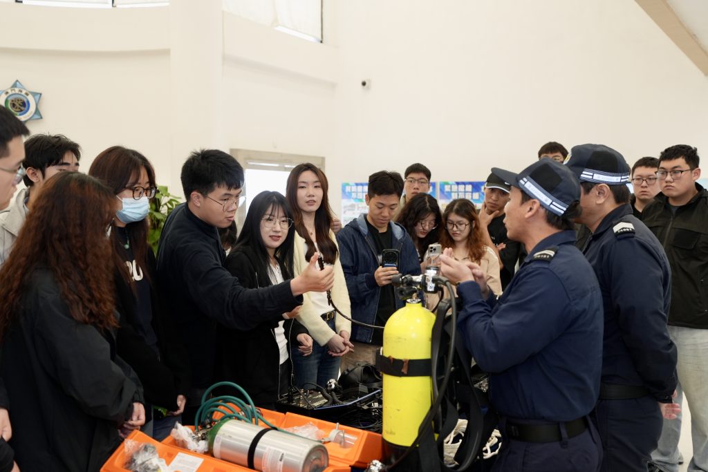 参观期间,由潜水队人员讲解在海上执勤及救援工作中常用的潜水装备、通讯设备、水陆两用车、水上电单车及橡皮艇等设备的操作和应用,同时安排参观者近距离接触和亲身体验。