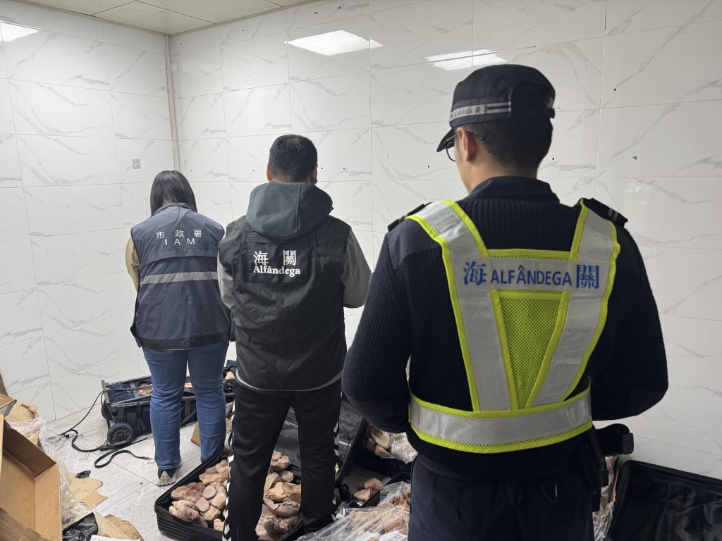 海关密切留意水客活动的发展态势,加强情报收集及分析,持续开展打击行动。本月1日上午,澳门海关于市内巡查期间发现北区一个怀疑水客活动散货点,实时对有关单位采取行动,查获150公斤急冻猪肚,货物市值约7千澳门元,1人违法被查。