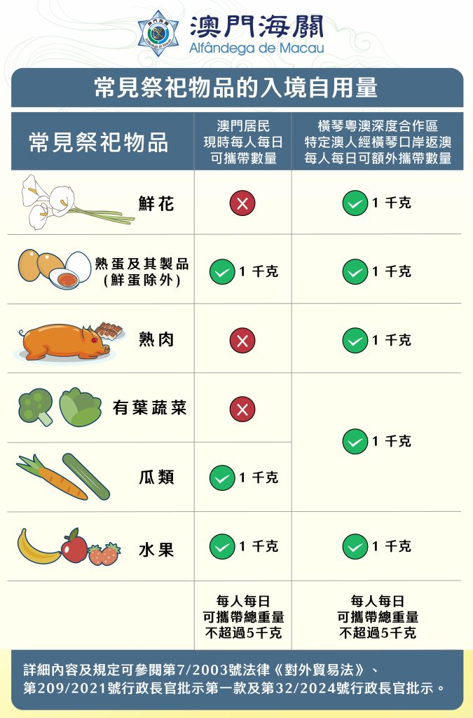 部份祭品的入境受法律规范,市民须注意及遵守相关规定。