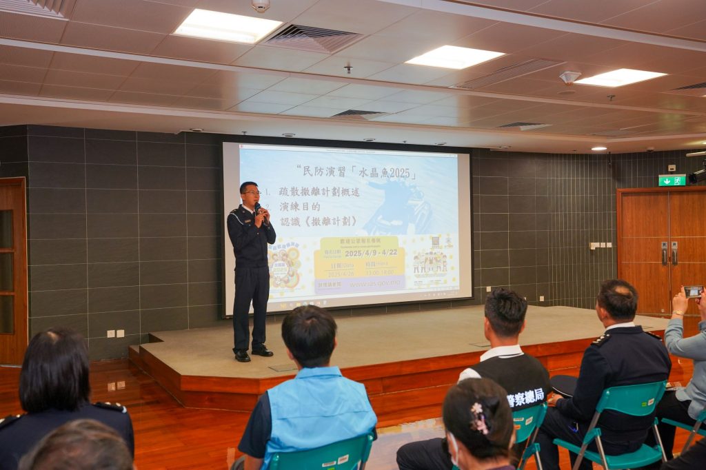 “水晶鱼2025”民防演习将于4月26日举行。本月10日,海关在警察总局协调下,到下环活动中心与下环区坊众互助会及南湾西环街区坊众互助会举办讲解会,介绍演习的目的、内容以及演习当天的具体安排,并呼吁市民踊跃报名参与,共同提升小区防灾及应变能力。