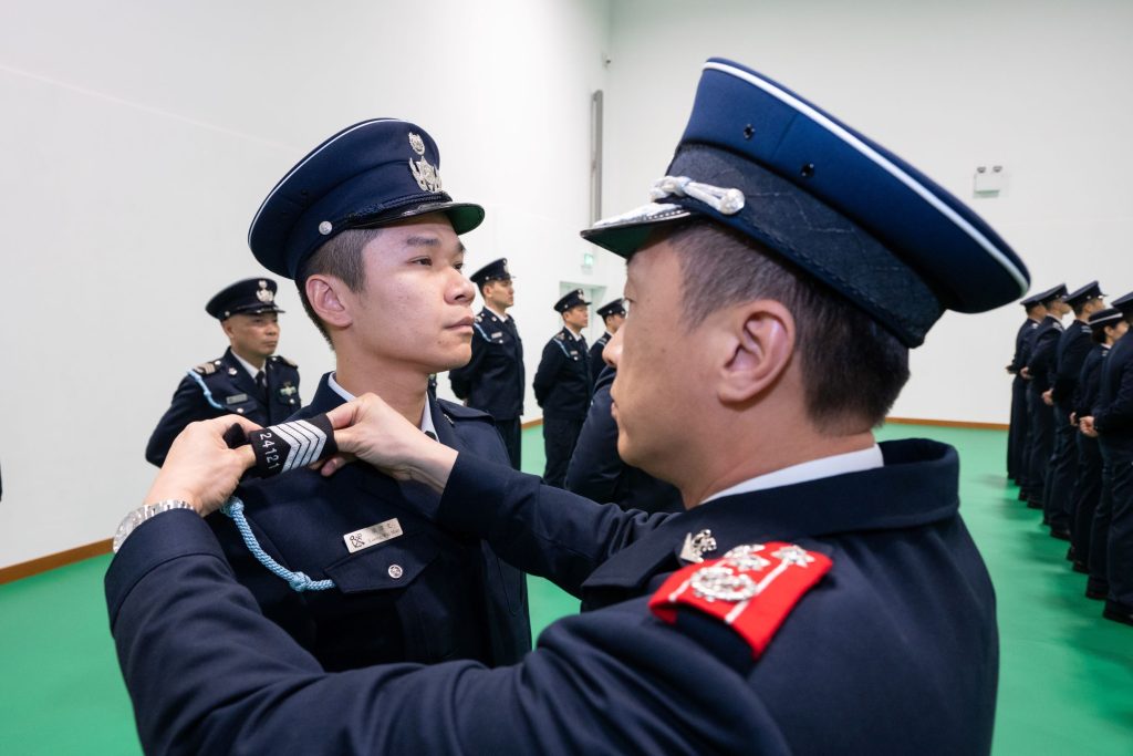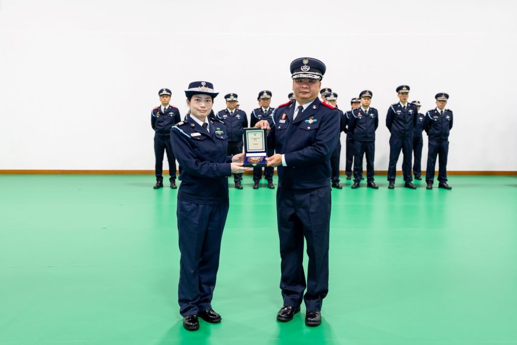 仪式上,30名晋升人员进行宣誓后,由副关长李煜辉及助理关长叶华钊分别为各人佩戴肩章,正式晋升成为首席关员。随后,亦向获得培训课程总成绩优异奖的人员李晓慧颁发奖项。