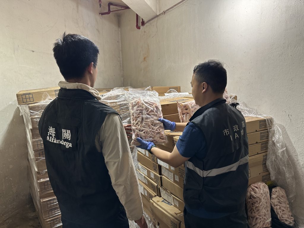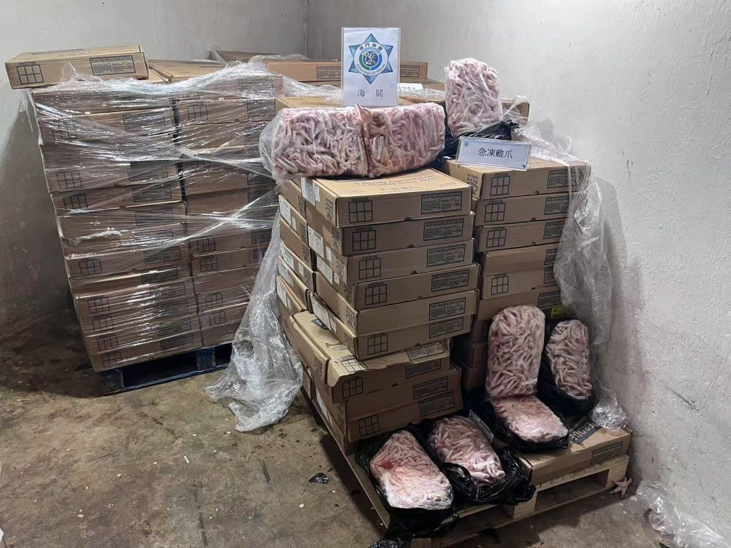 海关根据水客活动发展态势,结合情报收集及分析,对水客散货点加强巡查,持续打击水客活动。本月15日下午,澳门海关于市内巡查期间发现北区一个怀疑水客活动散货点,实时对有关单位采取行动,查获约重2400公斤急冻鸡爪,货物市值约12万澳门元,1人违法被查。