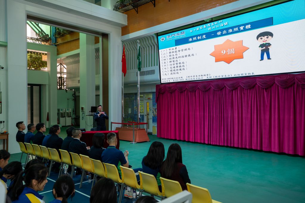 另外,海關代表亦介紹澳門對外貿易法律的相關知識,以及打擊水客活動的工作成效。通過真實的執法案例,學生們能夠深入了解當前常見的水客活動運作模式、貨物種類及作案手法。