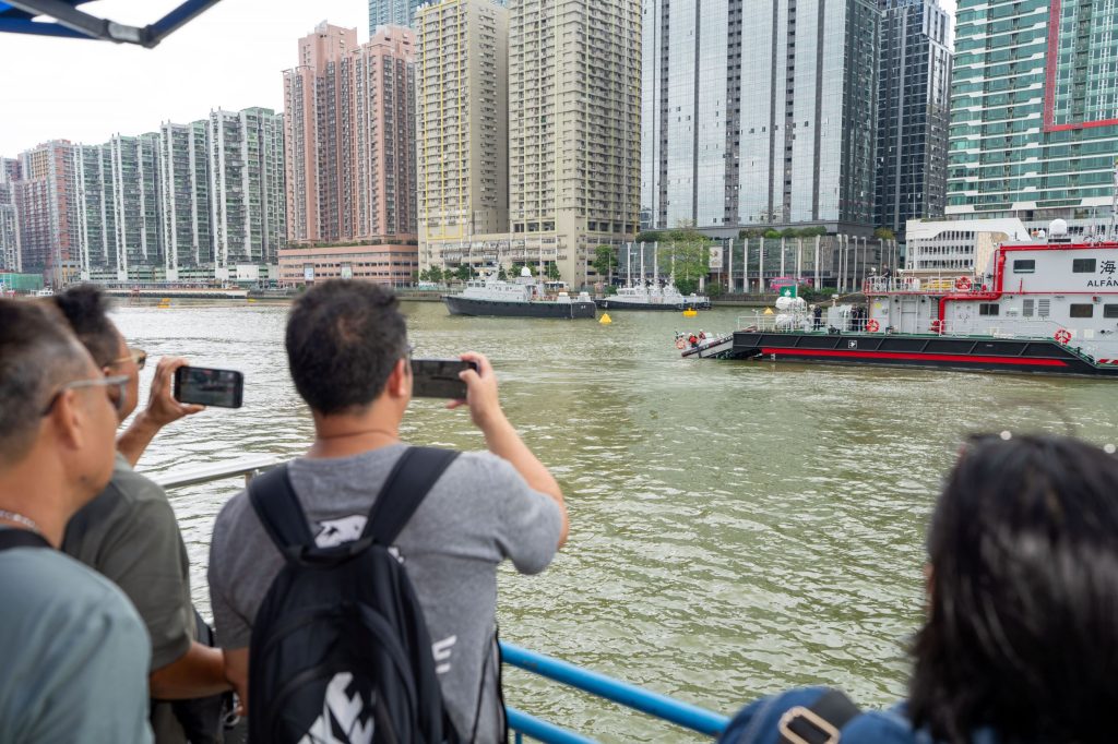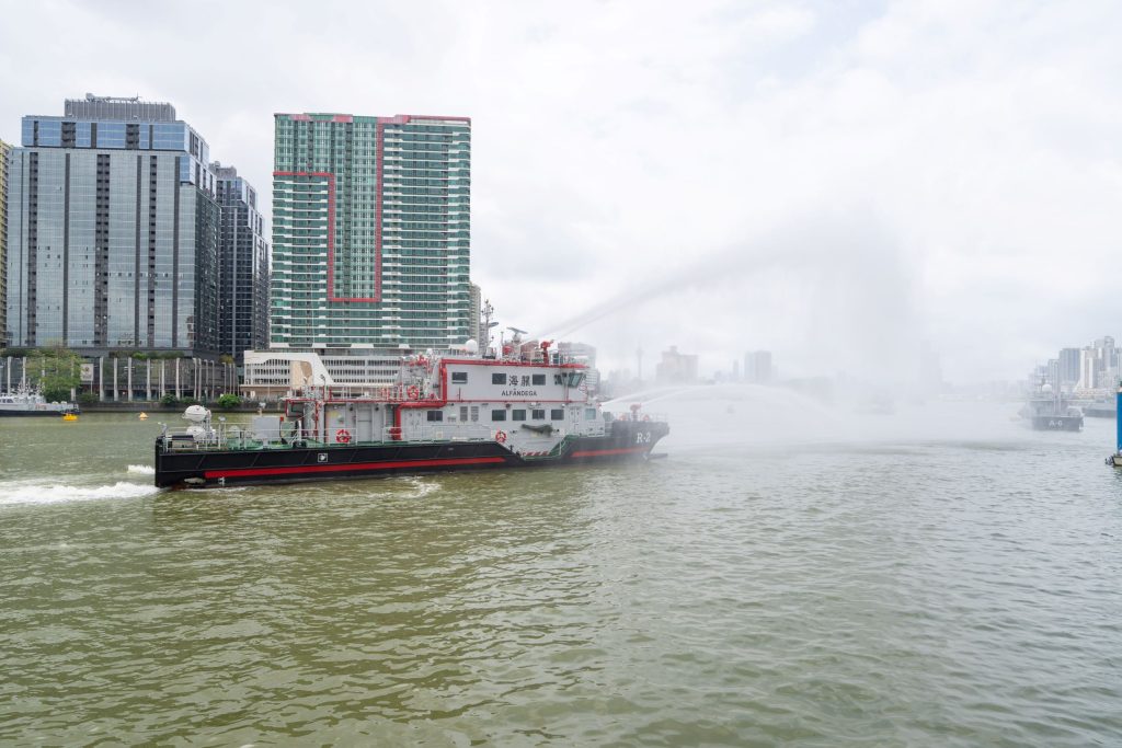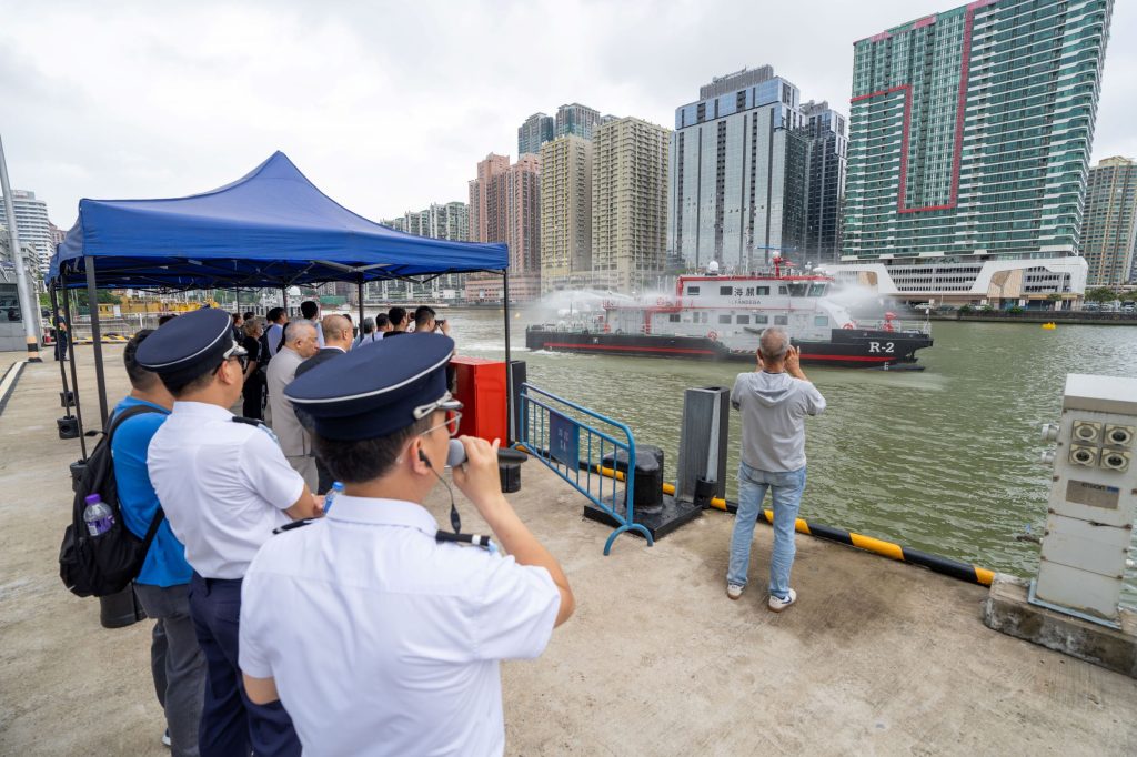 另外,海关亦向参观者展示救援快艇的救援机动性及消防水炮的海上灭火能力,同时示范水炮使用水幕喷洒模式应对海上救援工作,让参观者进一步了解海关的日常工作内容。