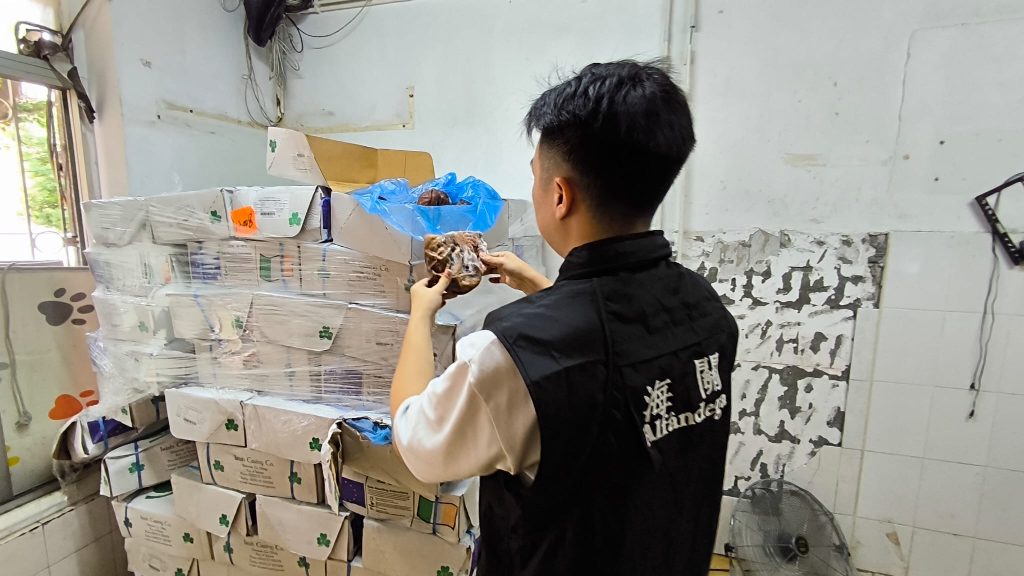 海關根據水客活動發展態勢,結合情報收集及分析,對水客散貨點加強巡查,持續打擊水客活動。本月19日上午,澳門海關於市內巡查期間發現北區一個懷疑水客活動散貨點,即時對有關單位採取行動,查獲不具備進口文件的急凍豬肚約800公斤,貨物市值約4萬澳門元,1人違法被查。
