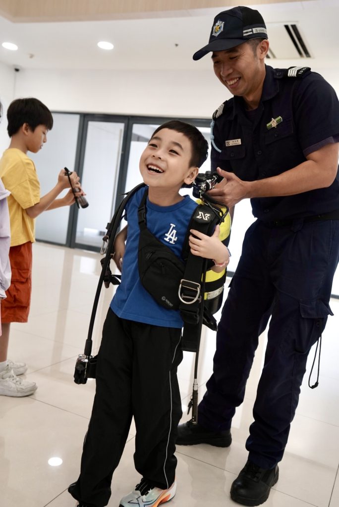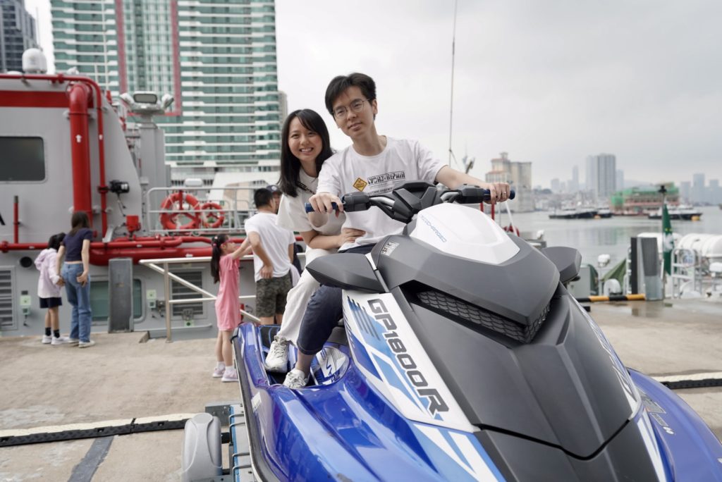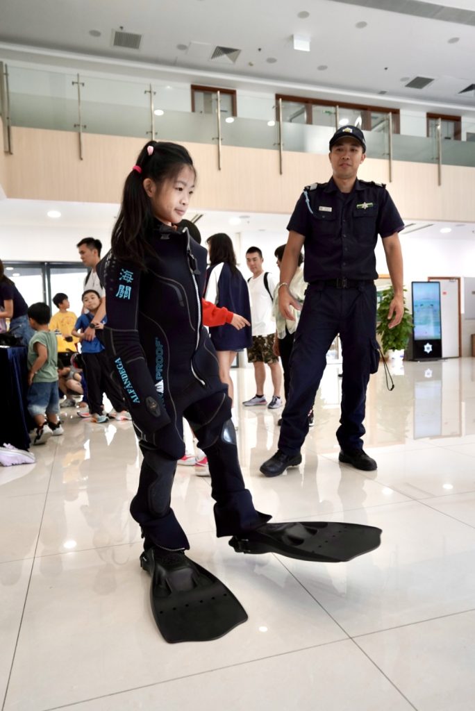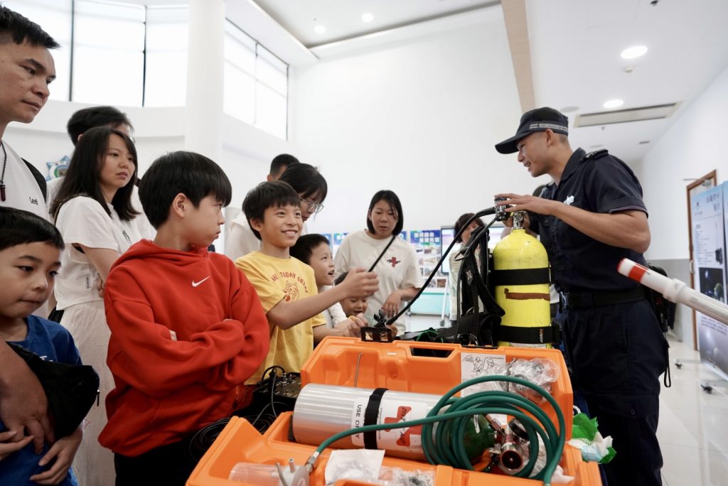 參觀期間,由潛水隊人員講解在海上執勤及救援工作中常用的潛水裝備、通訊設備、水陸兩用車、水上電單車及橡皮艇等設備的操作和應用,同時安排參觀者近距離接觸和親身體驗。