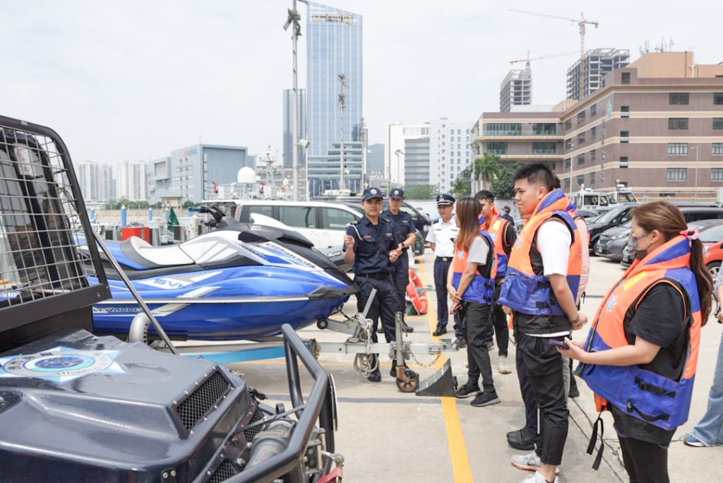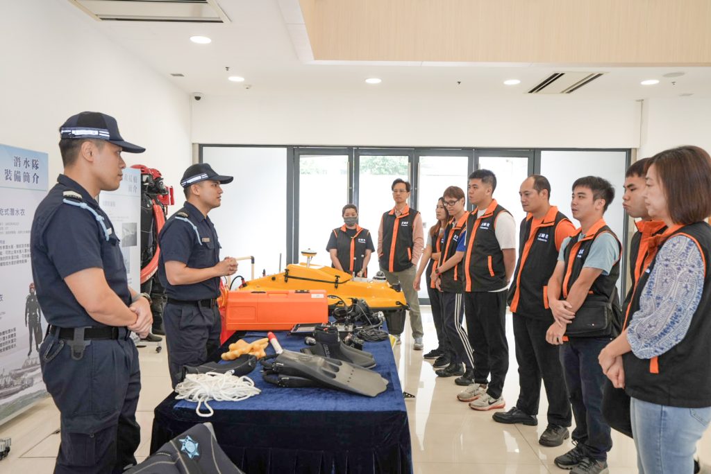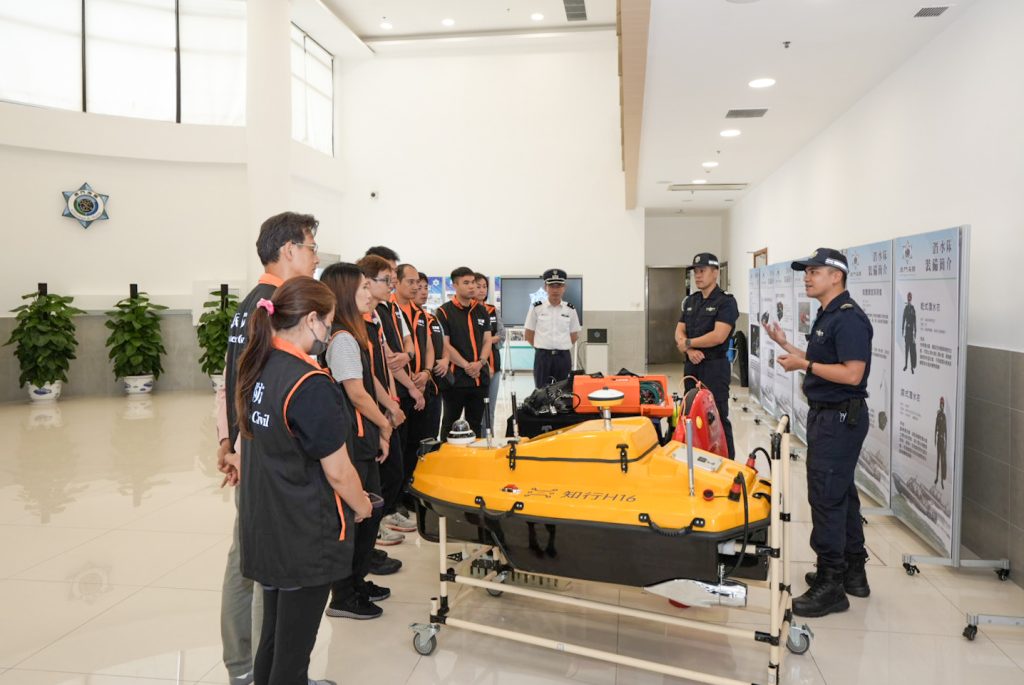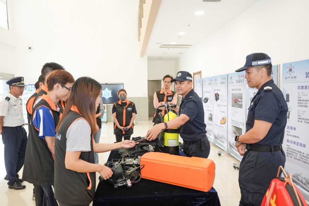 參觀期間,由潛水隊人員講解在海上執勤及救援工作中常用的潛水裝備、通訊設備、水陸兩用車、水上電單車及橡皮艇等設備的操作和應用,同時安排參觀者近距離接觸和親身體驗。