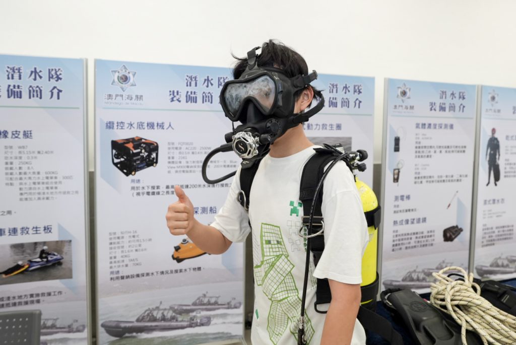 參觀期間,由潛水隊人員講解在海上執勤及救援工作中常用的潛水裝備、通訊設備、水陸兩用車、水上電單車及橡皮艇等設備的操作和應用,同時安排參觀者近距離接觸和親身體驗。