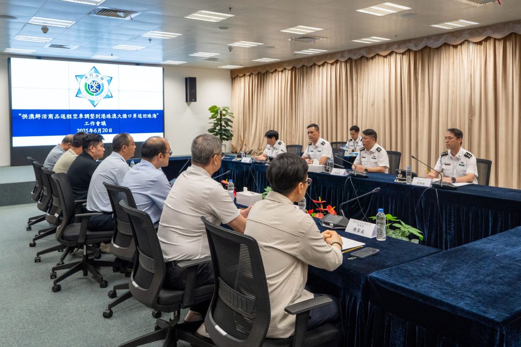 De acordo com o aviso dos Serviços de Postos Fronteiriços do Município de Zhuhai sobre o ajustamento do posto fronteiriço para circulação dos veículos que transportam produtos frescos e vivos para Macau no seu regresso a Zhuhai publicado em 20 de Junho, o posto fronteiriço pelo qual os veículos que transportam produtos frescos e vivos para Macau regressam a Zhuhai será ajustado, deixando de ser o posto fronteiriço exclusivo do Parque Industrial Transfronteiriço Zhuhai-Macau para passar a ser o Posto Fronteiriço de Macau da Ponte Hong Kong-Zhuhai-Macau, em virtude de garantir a circulação sem obstáculos destes veículos no retorno de Macau para Zhuhai, os SA realizaram com o sector em 20 de Junho uma reunião de trabalho com o intuito de explicar o assunto ligado com o respectivo aviso.