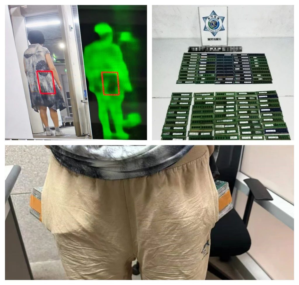 于6月25日下午,海关人员在关闸口岸出境旅客检查区发现一名可疑女子,其神情紧张,怀疑藏有可疑物品。经对其进行详细检查后,发现该名女子将100件计算机内存缠于腰间,试图偷运出境。