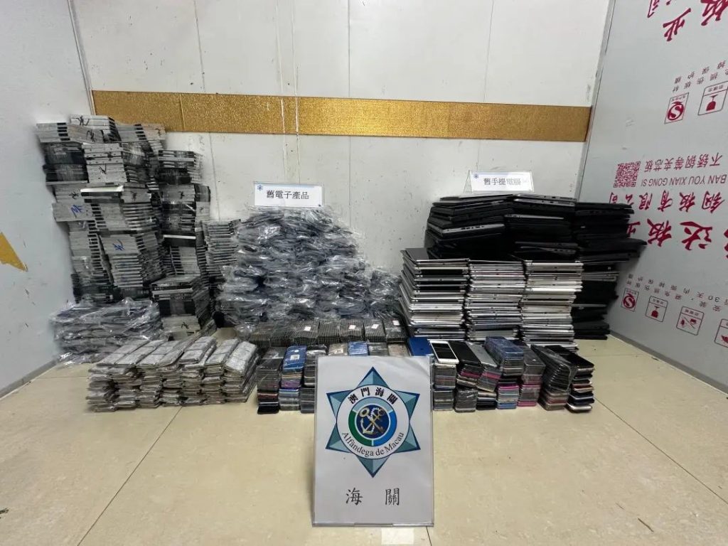 於7月28日下午,海關人員對一個懷疑水客活動散貨點進行監察,期間發現1名男性水客從目標單位步出並向關閘方向離去,口岸關員隨即在出境旅客檢查區進行截查,並在該名男性水客的隨身物品中查獲舊電子產品。經查問,其承認在目標單位取貨及帶貨出境。海關人員見時機成熟立即對目標單位採取行動,在單位內查獲1名女性現場負責人,以及舊手提電腦278部及舊電子產品900件,涉案貨物估值約18萬澳門元。