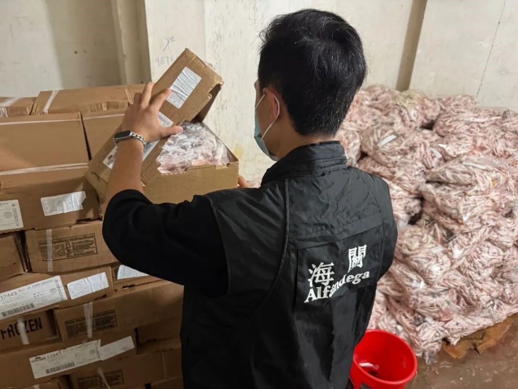 海關持續監察水客活動的發展態勢,並加強情報收集和分析,嚴厲打擊有關不法行為。於7月31日,海關於市內巡查期間發現北區一個懷疑水客活動散貨點,即時對有關單位採取行動,查獲急凍雞爪約3,000公斤,貨物市值約6萬5千澳門元,1人違法被查。