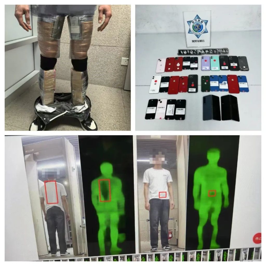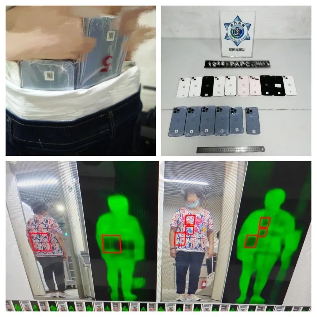 Em 25 de Julho, o pessoal alfandegário encontrou um indivíduo do sexo masculino que apresentava uma postura anormal ao caminhar e suspeitas de esconderem mercadorias na área de inspecção de passageiros de saída do Posto Fronteiriço das Portas do Cerco. Após uma inspecção detalhada, foi descoberto que o indivíduo tinha amarrado na perna 26 telemóveis usados, tentando contrabandeá-los para fora de Macau.