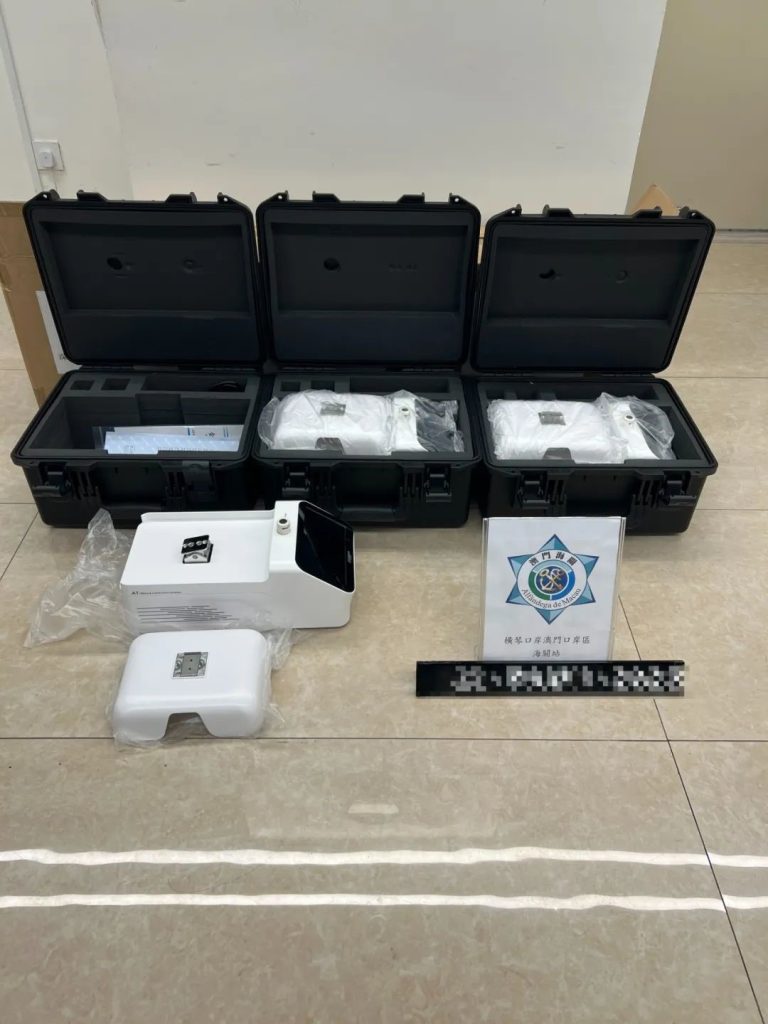 Em 28 de Julho, através do sistema de alerta do “Sistema de Gestão de Riscos”, os SA interceptaram um veículo de carga transfronteieiço e cruzado na via de entrada do Posto Fronteiriço de Hengqin. Após inspeção, foi detetado que o veículo transportava 3 instrumentos de recolha de sangue e de pesagem, numa tentativa de introdução clandestina no território.