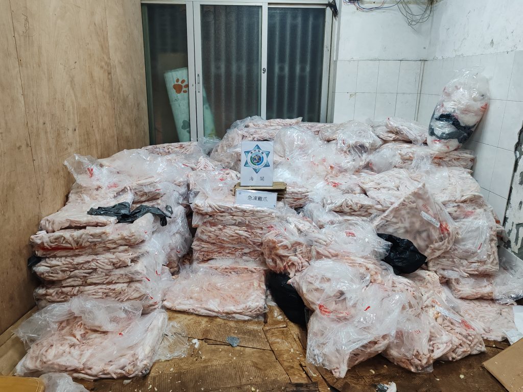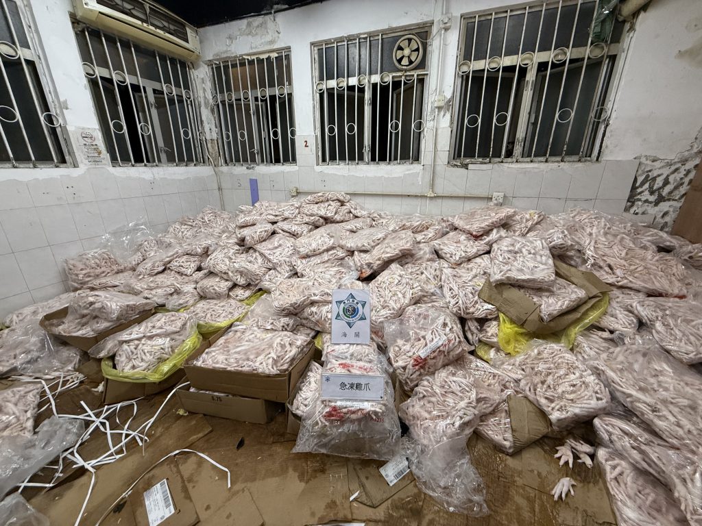 Os SA monitorizam continuamente a situação e tendência de desenvolvimento da actividade ligada ao comércio paralelo, reforçando a recolha e análise de informações, a fim de combater severamente as referidas acções ilícitas. No dia 11 de Agosto, durante uma rusga na cidade, os SA identificaram um ponto de distribuição suspeito de actividades de comércio paralelo na Zona Norte, tomando de imediato acção contra a unidade em questão. Foram apreendidos cerca de 3000 Kgs de patas de galinha congeladas, com um valor de mercado de aproximadamente 150 mil patacas, tendo sido detido 1 indivíduo por acto de infracção.